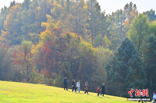 10月14日,隨著氣溫降低,長春秋色漸濃,在凈月潭國家森林公園,大量市民前來賞秋。中新社記者 張瑤 攝
